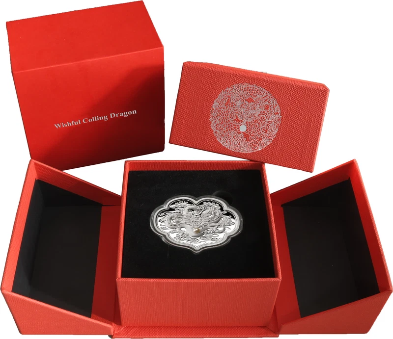 2022 2 oz Wishful Coiling Dragon with Pearl 999 Proof Silver Coin with Box and Certificate