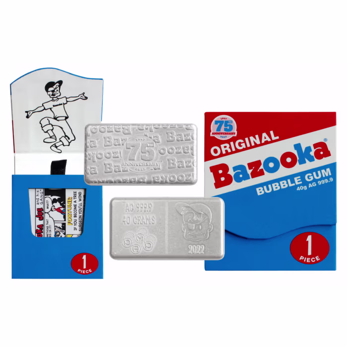 2022 40 gram 75th Anniversary Bazooka Joe .9999 Silver Wafer