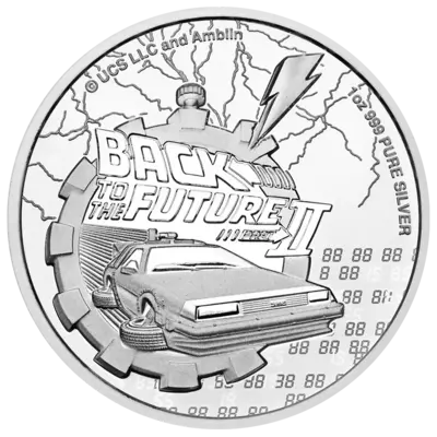 -This exceptional silver bullion coin is dedicated to the second movie of the successful trilogy “Back to the Future™”and was struck from one ounce of 99.9% silver.